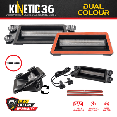All-New REDFLEET KINETIC Series *Dual-Colour* 36 L.E.D. Warning Light for In-Vehicle Dash Deck Windscreen Glass Suction & Adhesive Applications.